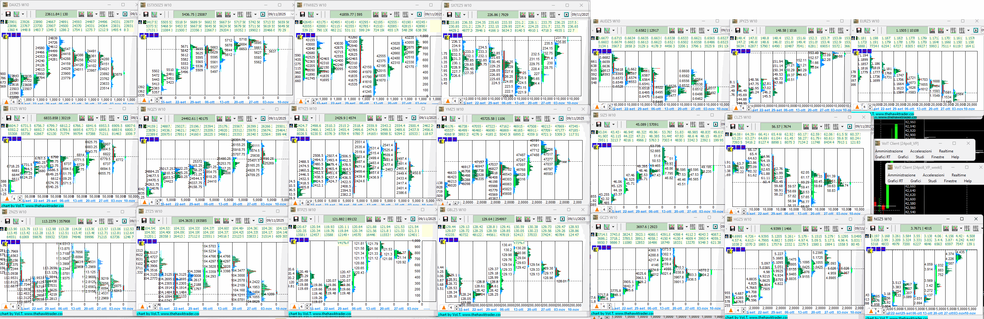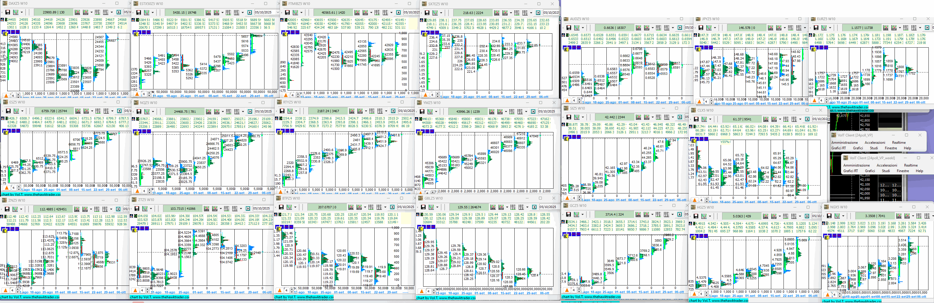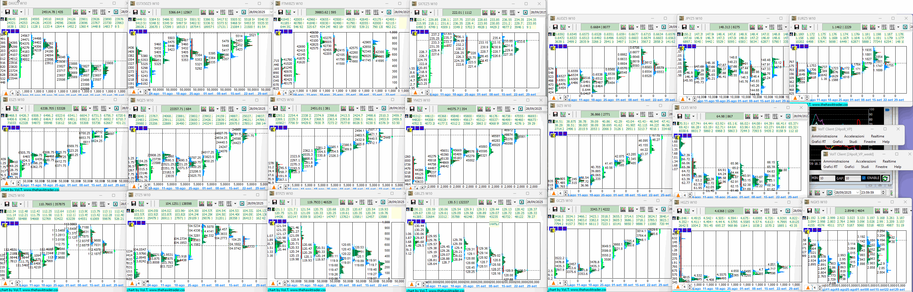 qui sotto puoi scaricare i grafici Volume Profile Daily e Weekly su 20 futures organizzati in 4 asset classes FIXED INCOME : tnote btp bund , VALUTE : € £ Y , INDICI : dax stoxx fib sx7e es nq ym rty, COMMODITIES : oro argento rame oil)